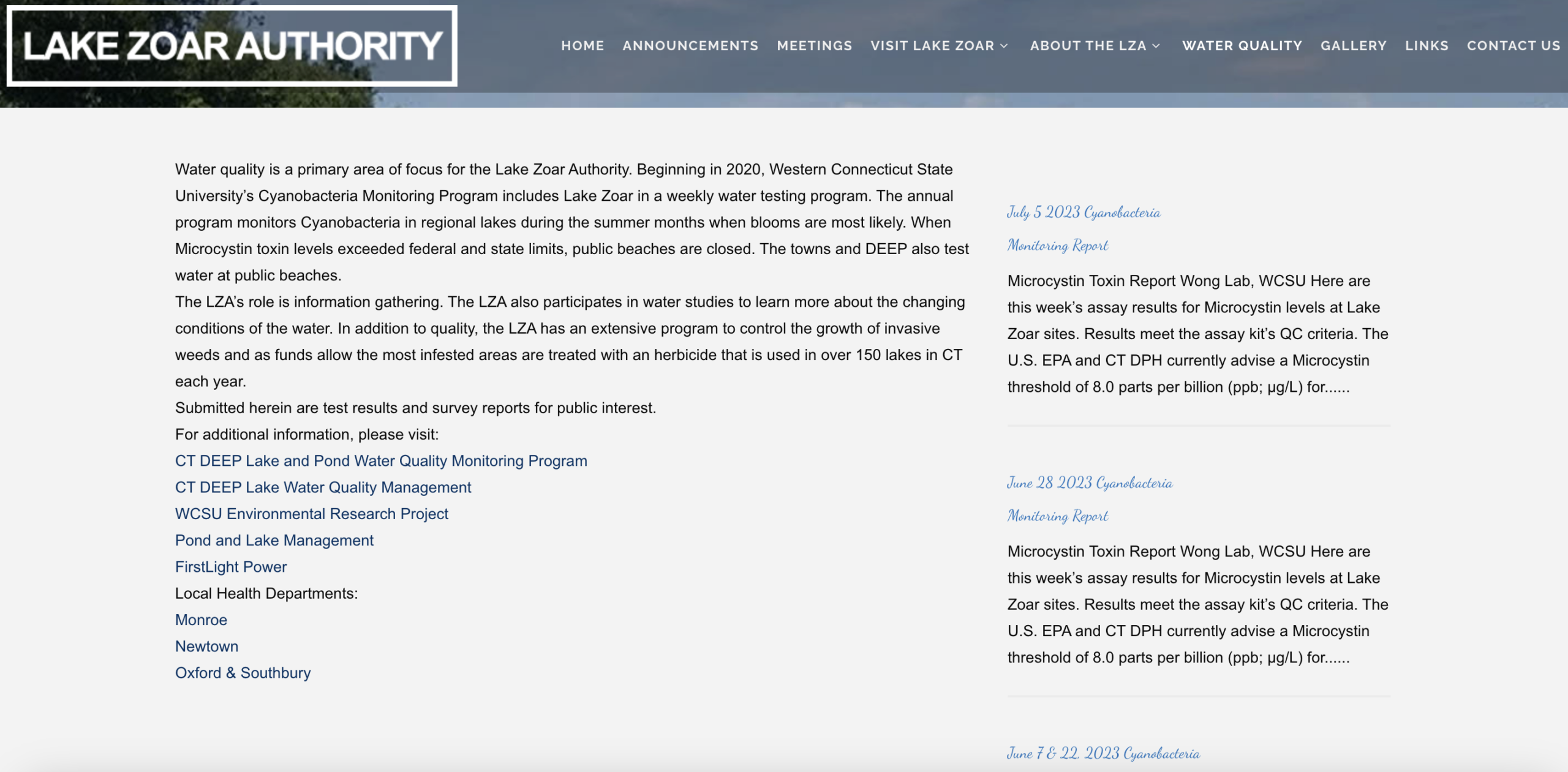 The Lake Zoar Authority, based in Connecticut, is tasked with the goals of improving water quality and promoting safe boating on Lake Zoar.
